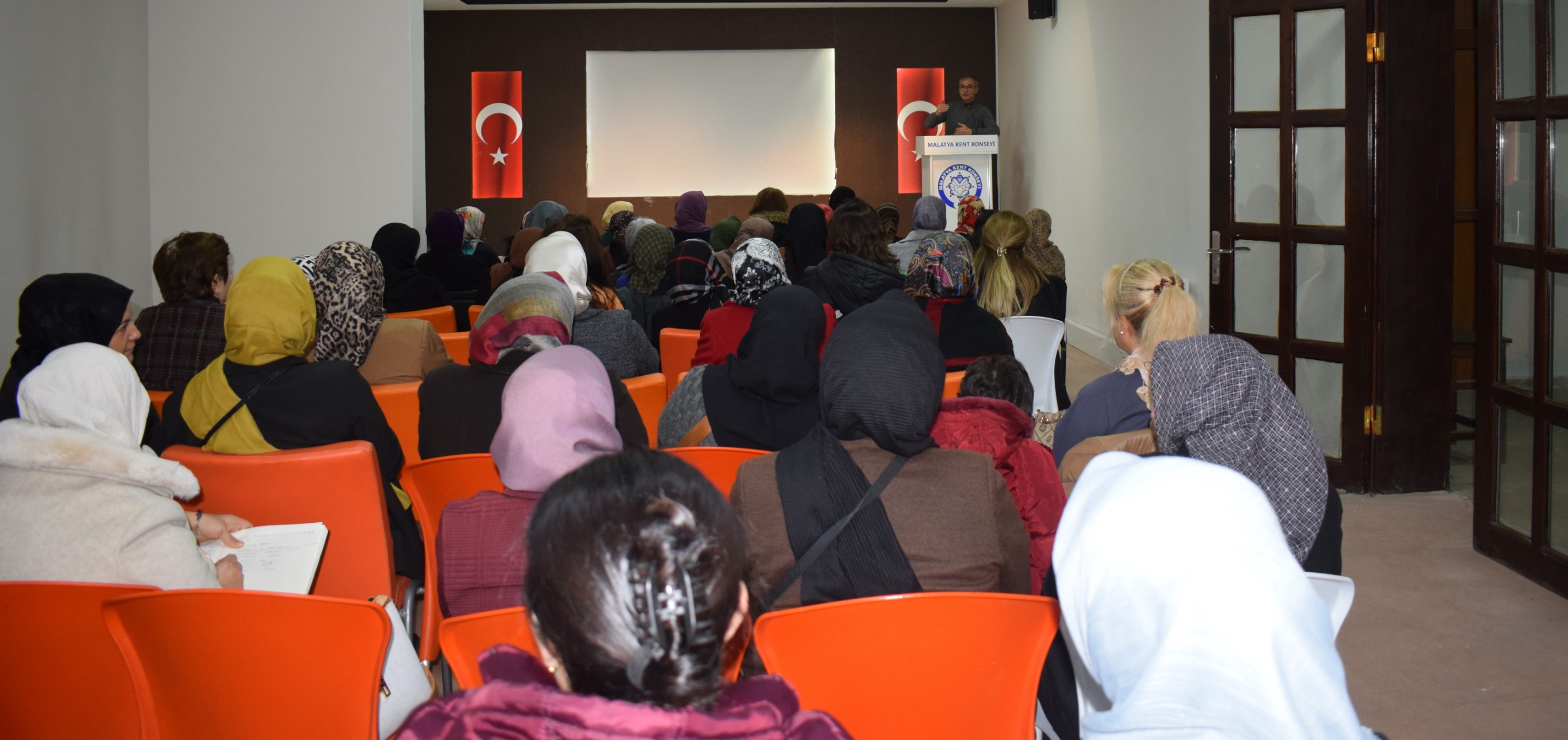Malatya Kent Konseyi Toplantı Salonu’nda gerçekleştirilen programa Malatya Kent Konseyi Kadın Meclisi Başkanı Saliha Bulut, sunumunu gerçekleştirmek üzere Eğitim Uzmanı Ferat Dalaman ve Kadın Meclisi üyeleri katıldı.