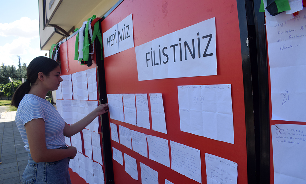 Filistin’de yaşanan İsrail zulmüne karşı dünyanın dört bir yanında tepkiler devam ediyor. Bu kapsamda Malatya Kent Konseyi Çocuk Meclisi üyeleri geçtiğimiz günlerde düzenlemiş olduğu ‘Hepimiz Filistiniz’ konulu programı kapsamında zulme karşı duygu ve düşüncelerini kaleme alan çocukların mektupları Malatya Kent Konseyi binasında sergilendi.