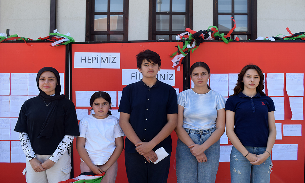 Malatya Kent Konseyi Çocuk Meclisi üyeleri Filistinli çocuklar için yazılan mektupları okudular.