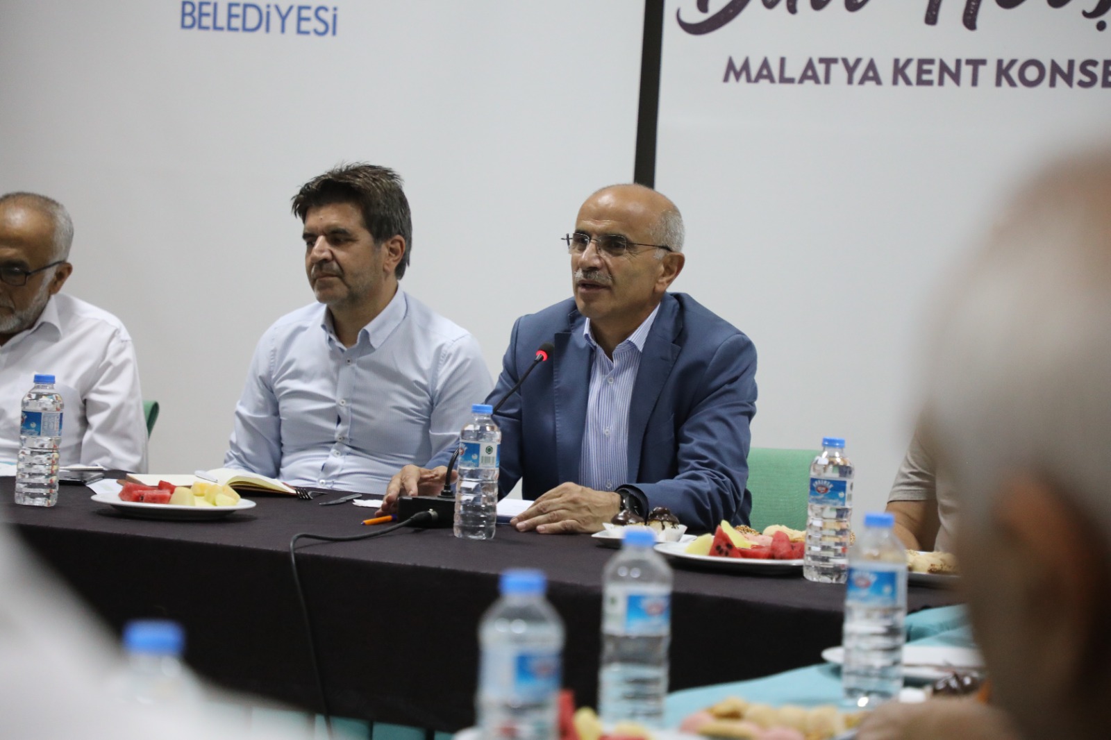 Malatya Kent Konseyi Toplantı Salonu’nda düzenlenen istişare toplantısına Malatya Büyükşehir Belediye Başkanı ve Malatya Kent Konseyi Başkanı Sami Er, Malatya Kent Konseyi Genel Sekreteri Dr. Hasan Batar ve kıdemli hemşeriler katıldı.