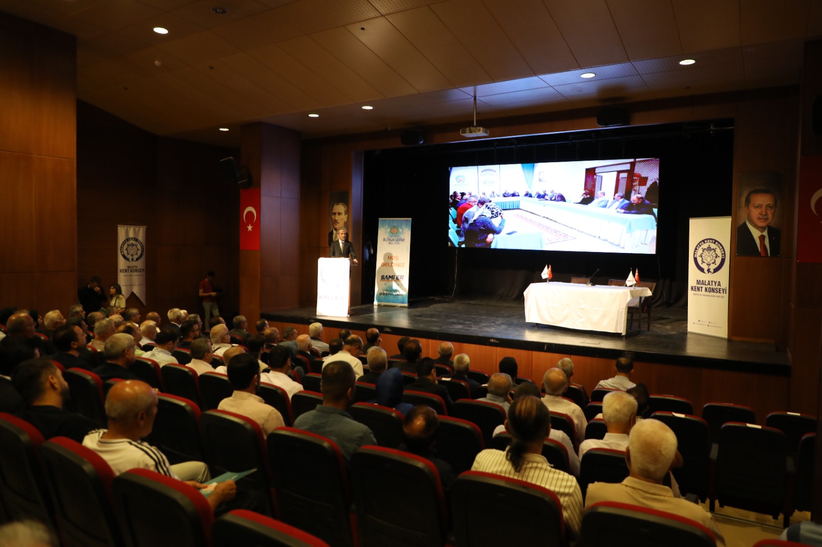 Malatya Kent Konseyi 10’ncu Olağan Genel Kurulu, Malatya Kongre ve Kültür Merkezi’nde gerçekleştirildi. Kurum temsilcileri, oda ve vakıf başkanlarının katılımıyla düzenlenen Genel Kurul Toplantısı, Saygı duruşu ve İstiklal Marşı’nın okunmasıyla başladı. Genel Kurul Toplantısında bir konuşma yapan Malatya Büyükşehir Belediye Başkanı Sami Er, İsrail zulmüne değindi. İsrail’in son cinayeti dolayısıyla Cumhurbaşkanı Recep Tayyip Erdoğan tarafından Milli Yas ilan edildiğini anımsatan Büyükşehir Belediye Başkanı Sami Er, “Siyonist, katil, terörist İsrail’i bir kez daha lanetliyorum. Filistin Davasının her zaman yanında olduğumuzu ifade etmek istiyorum. İsmail Heniyye’ye ve tüm şehitlerimize Allah’tan rahmet diliyorum” dedi.
