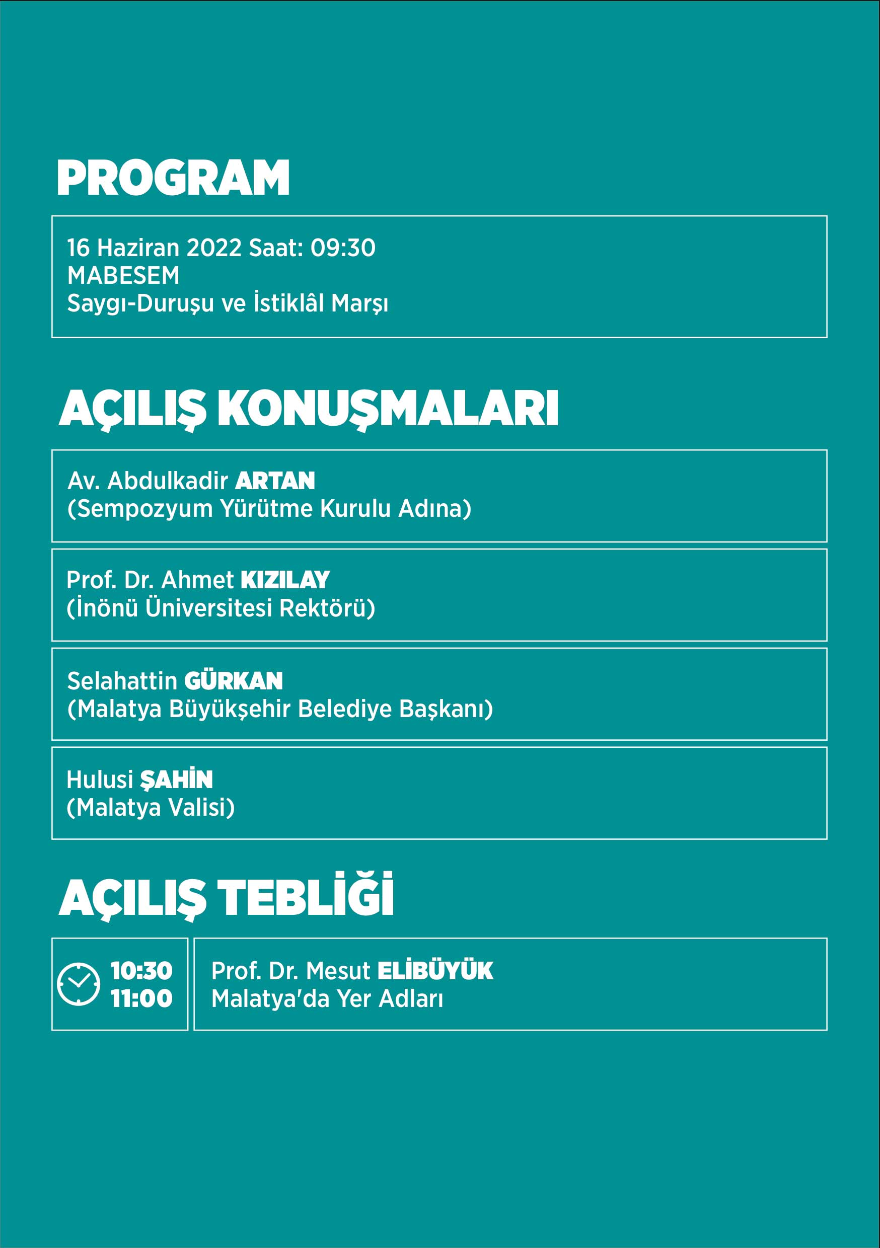 Alanında yetkin akademisyenlerimizin sunumlarıyla Malatya'mızın tarihini bütün yönleri ile ele alacağımız Malatya Tarihi Sempozyumu' muza katılımınızı bekleriz...