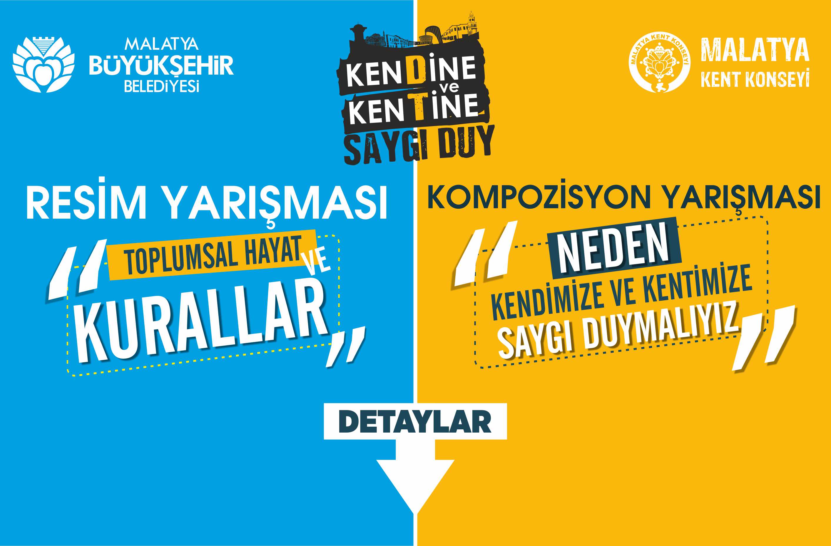 Malatya Büyükşehir Kent Konseyi Genel Sekreterliği 2018 yılı lokomotif projesi olarak başlattığı “Kendine ve Kentine Saygı Duy” projesi kapsamında Milli Eğitim Müdürlüğü aracılığı ile “Toplumsal Hayat ve Kurallar ”temasıyla ortaokul düzeyinde resim; “ Neden Kendimize ve Kentimize Saygı Duymalıyız” temasıyla da lise düzeyinde kompozisyon yarışması düzenliyor.